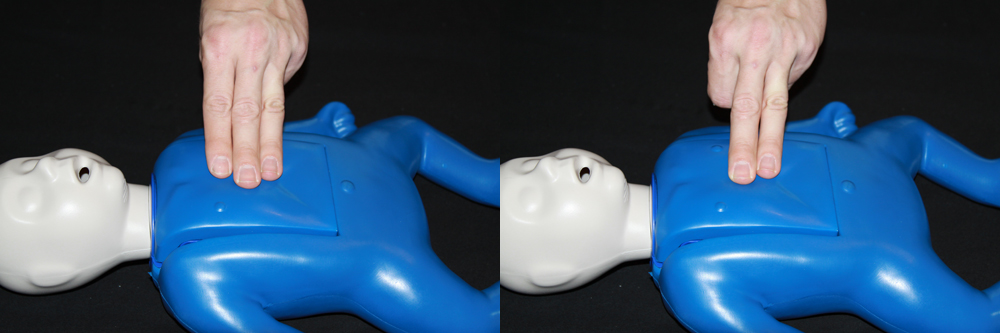 - 6. Ensure you release the pressure on the infant's chest between compressions to allow the chest wall to recoil. However, do not take your fingers off the victim's chest to prevent having to locate the proper location again. Keep a smooth steady rhythm and don't create a pause between compressions.